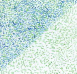 Using a true green Polychromos pencil add a layer of random spots.